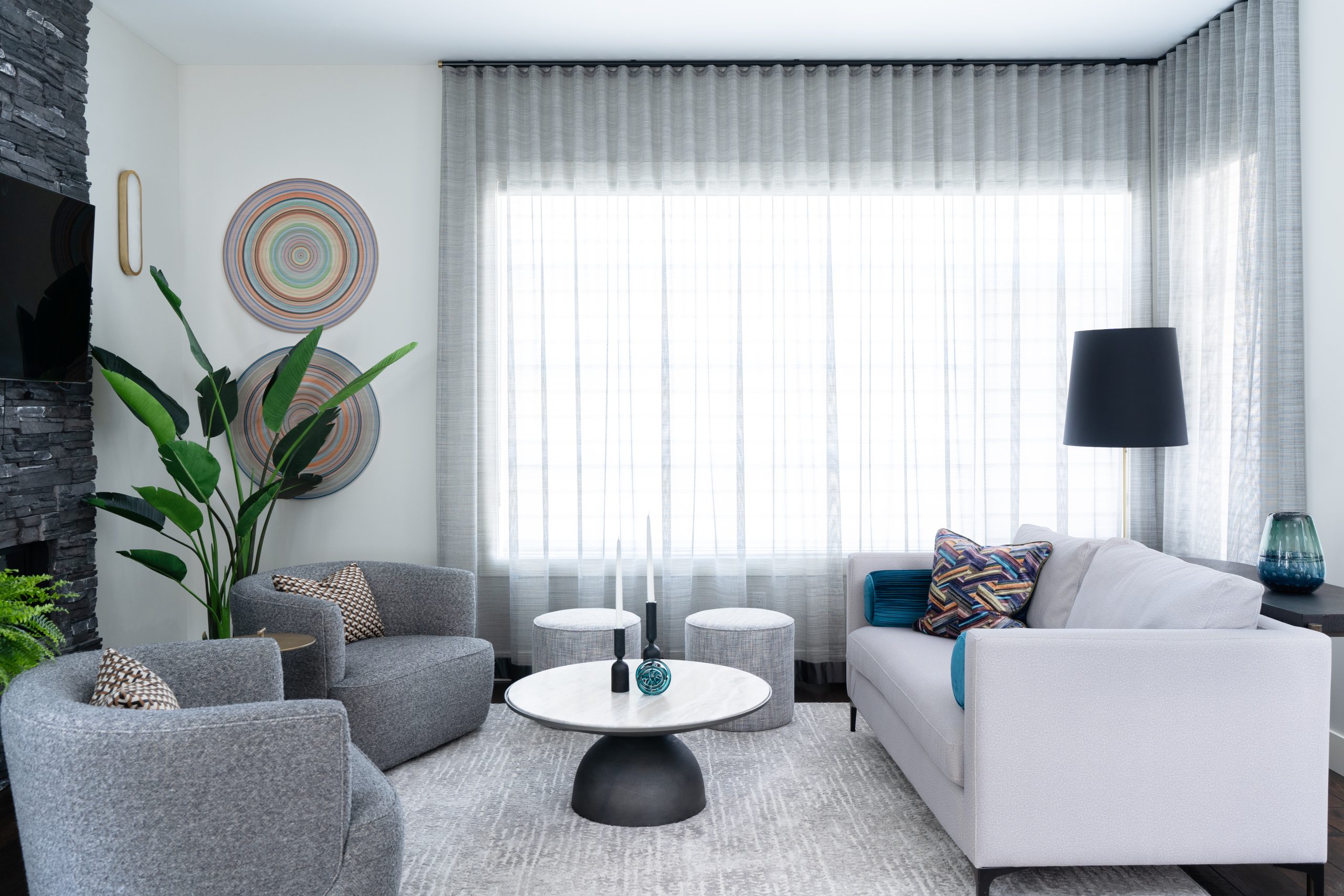 This family of four moved into their Altadore home and needed to furnish and decorate the entire main floor. Their two toddlers were now in need of space to move and play, and the parents wanted a separate adult space to entertain. The front room and dining area are perfect for hosting dinner parties and the family room at the back of the house is the kids play area. The entire main floor is not only beautiful but functional for every member of the family.