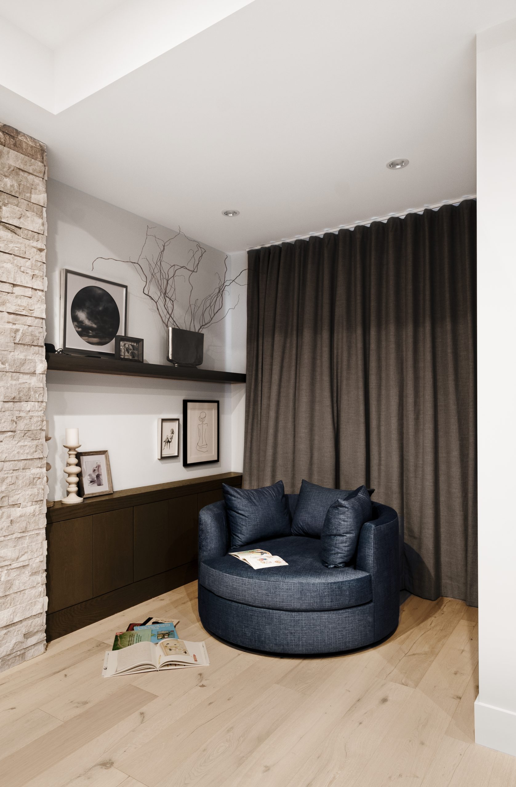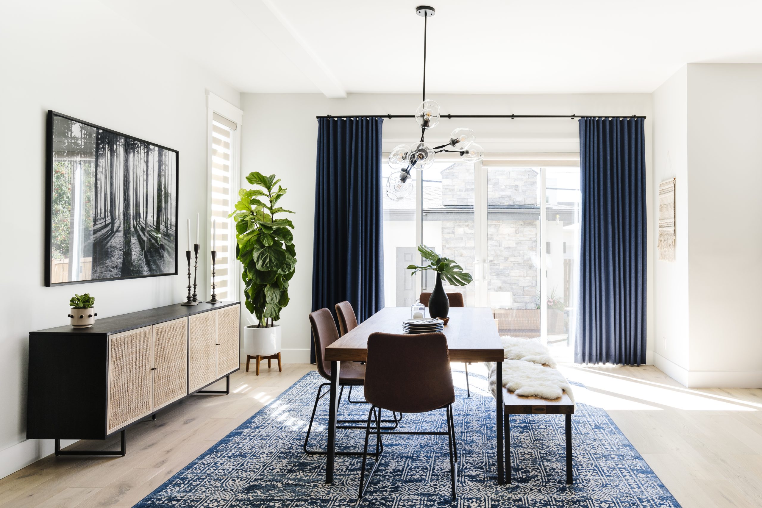 Our clients were a busy family of 6 who moved into their new home in the spring of 2020. Furnishing an entire home during COVID lockdown was a challenge. This young family wanted to create their forever home and needed the space to stand up to a home with 4 toddlers. They loved colour, so we incorporated their favourite blue into the furnishings and drapes, then used a complimentary colour scheme for the rest of the home. This gave it a fun, yet sophisticated feel. We used timeless colours, design and fabrics so that this home will transition with their busy family into the future and look good while doing it!